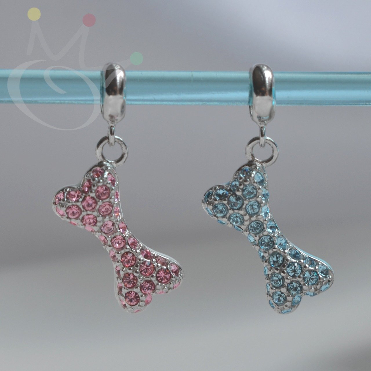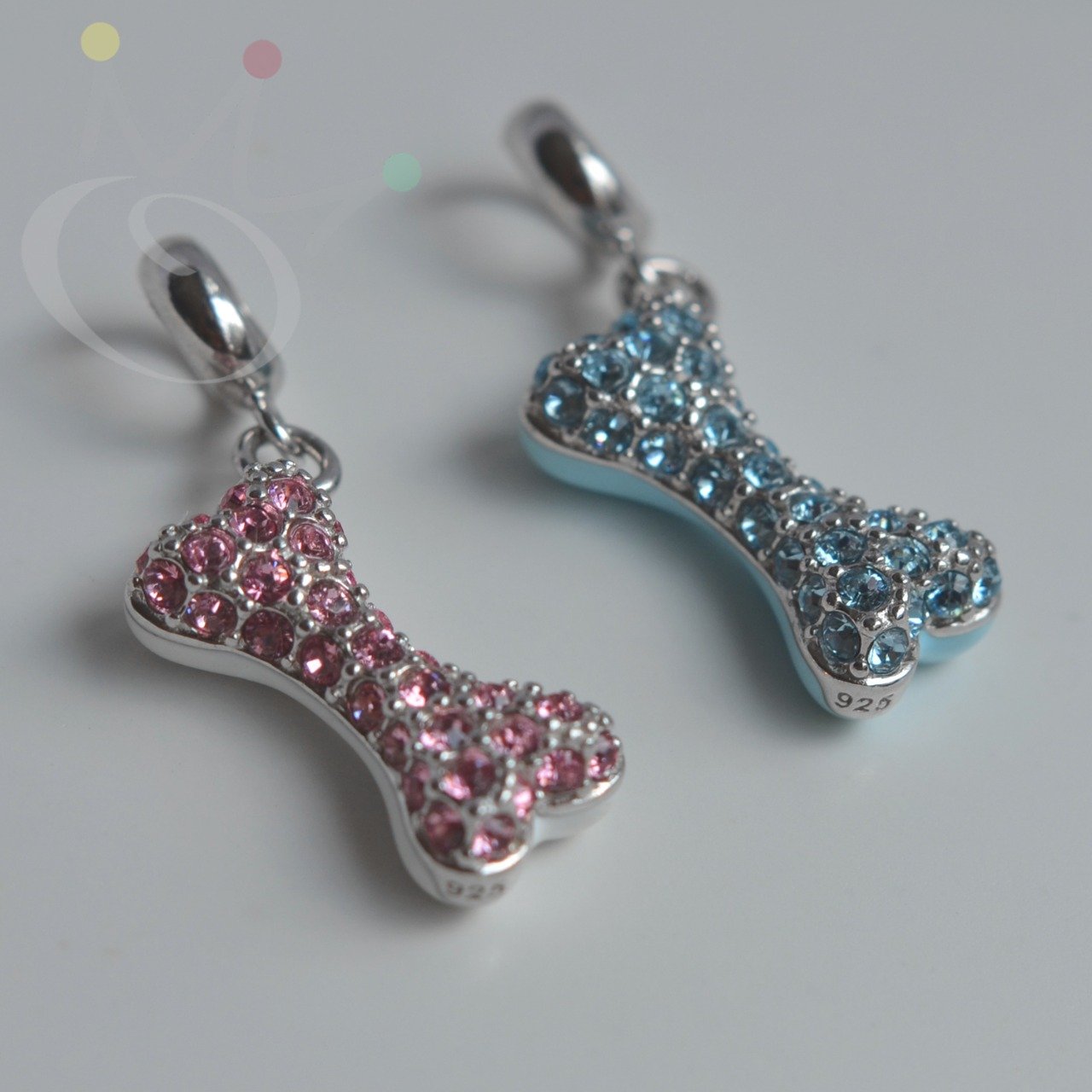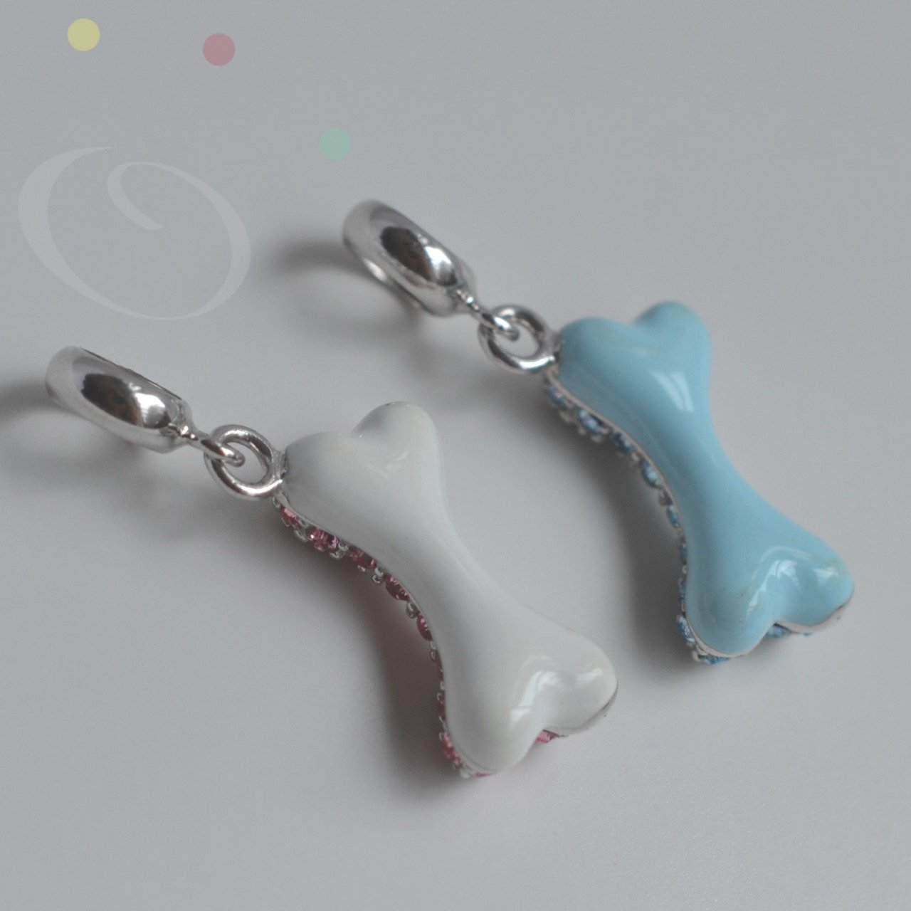Berloque Cute Osso Cravejado e Esmaltado Azul - Prata