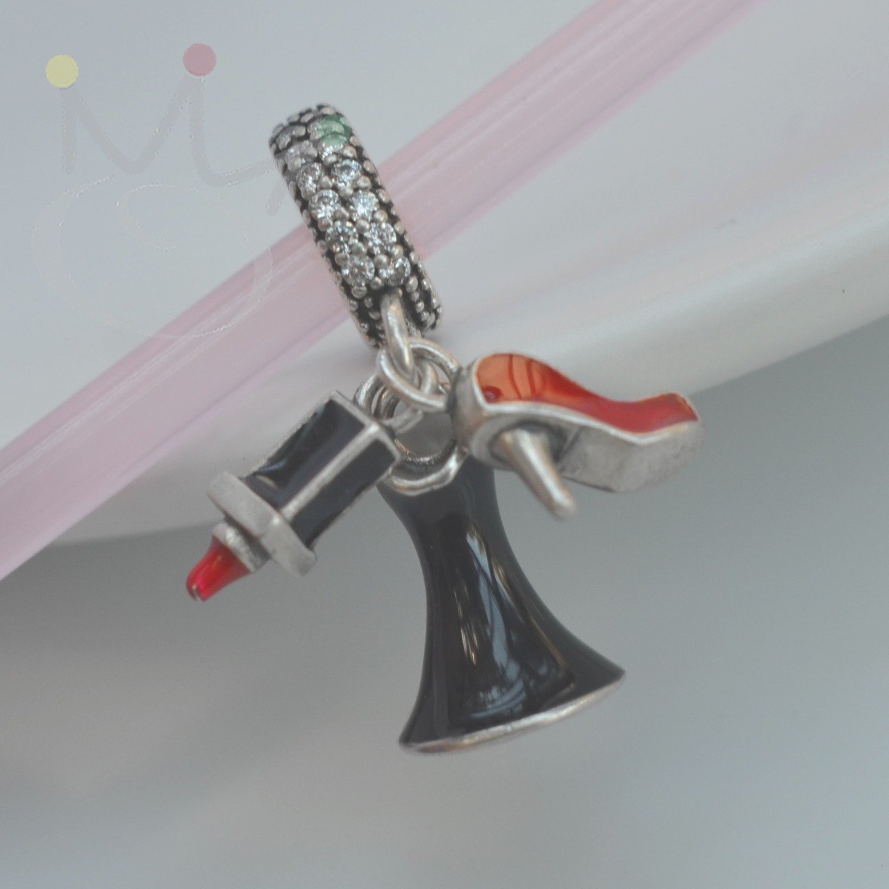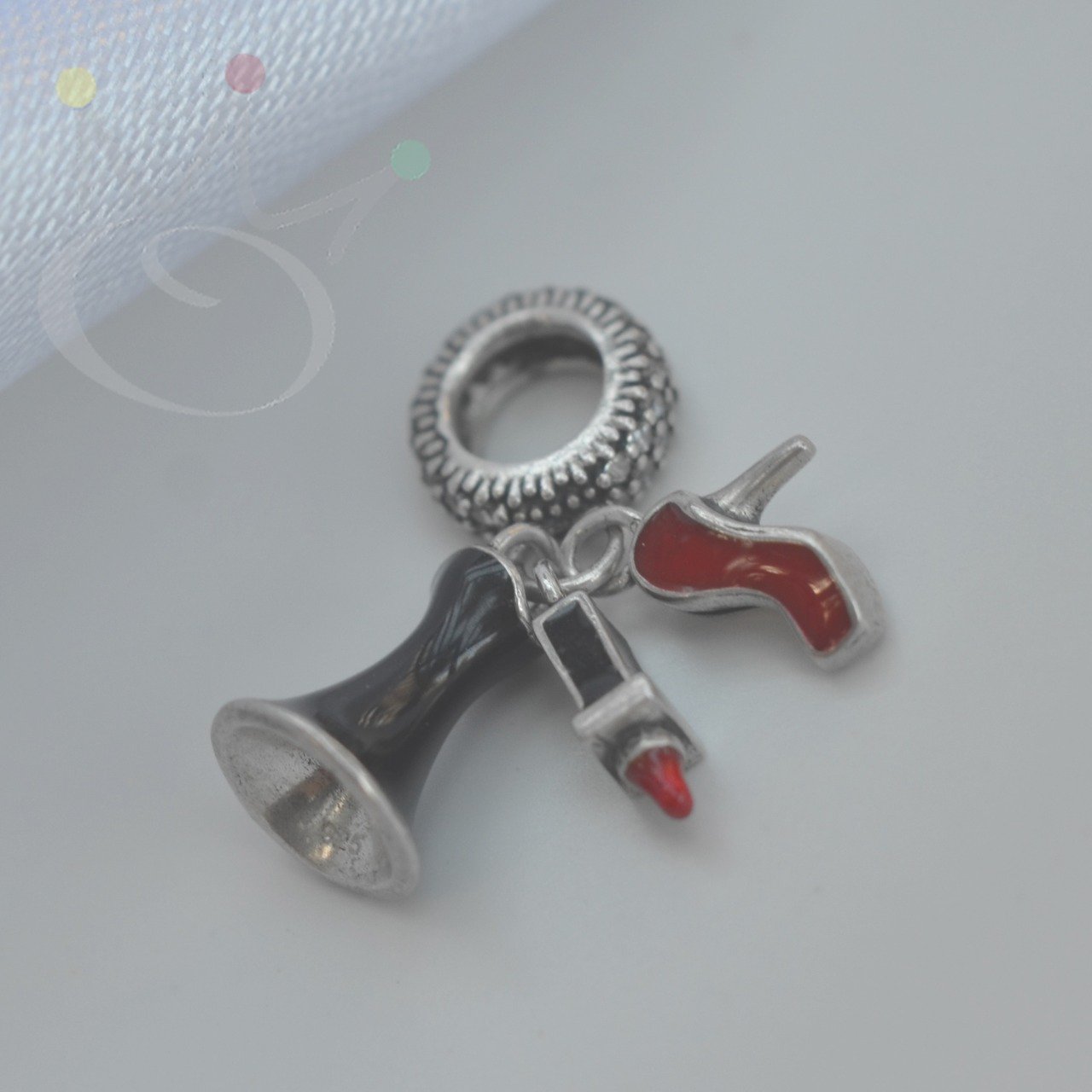 Berloque Vestido, Batom e Sapato Cravejado Esmaltado