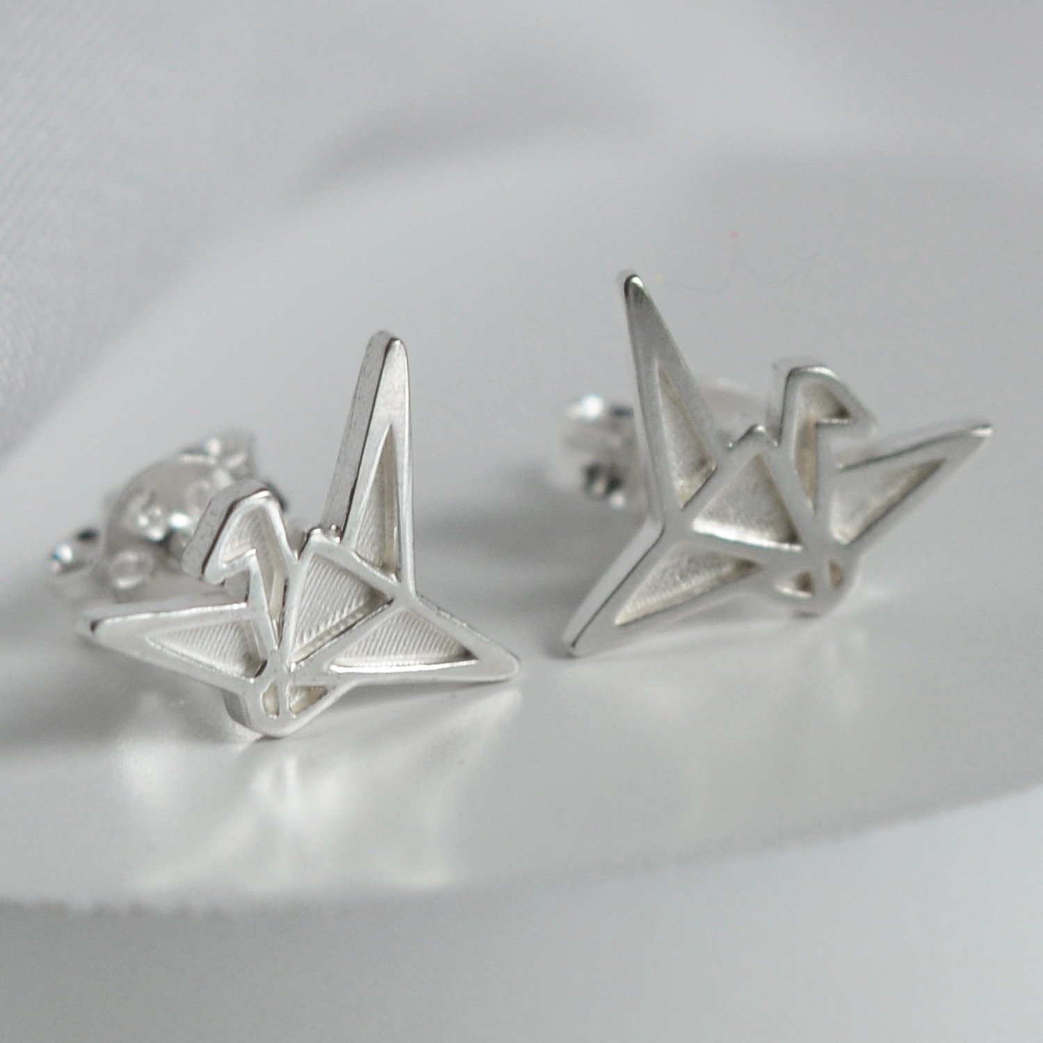 Brinco Origami Tsuru Baixo Relevo - Prata